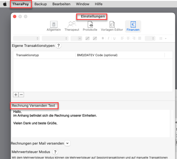 Hier wird Schritt für Schritt erklärt, wie du das Versenden von Rechnungen in TheraPsy einrichtest und nutzt.